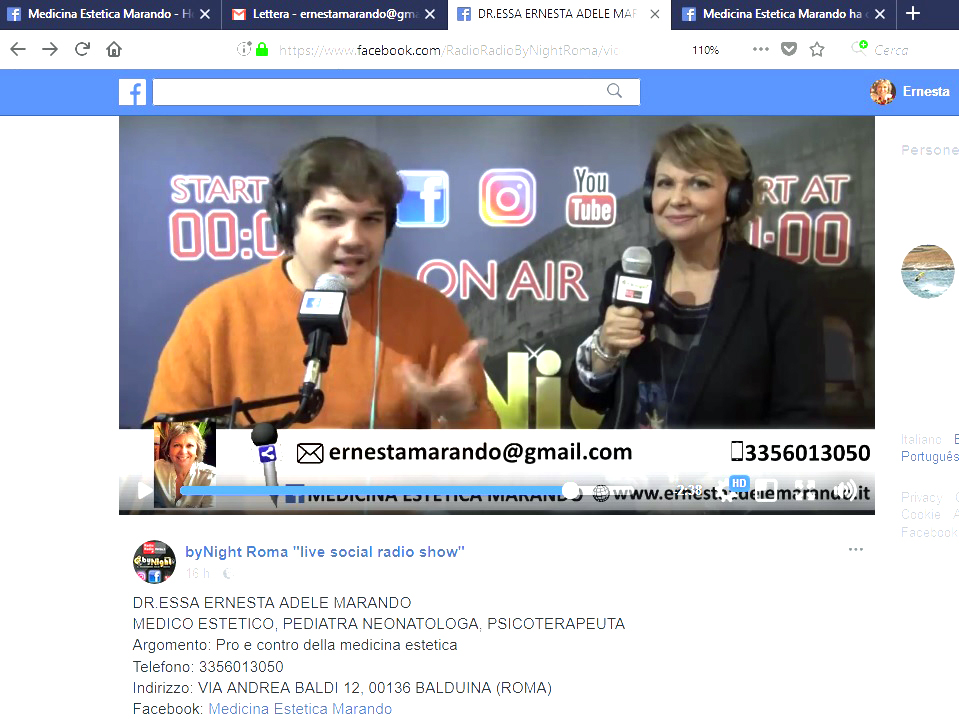 Sabato 16 2107 Dicembre - Video intervista a Ernesta Adele Marando Pediatra, Neonatologa, Psicoterapeuta e Medico Estetico. L'esperta risponde: La Medicina si occupa prima di tutto della Salute. Su come mantenerla o riacquistarla. O trovarla. E ogni settore specialistico è innegabilmente collegato agli altri...